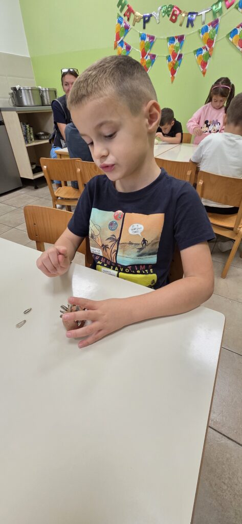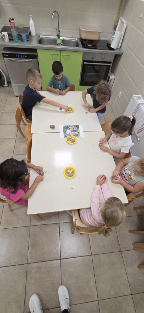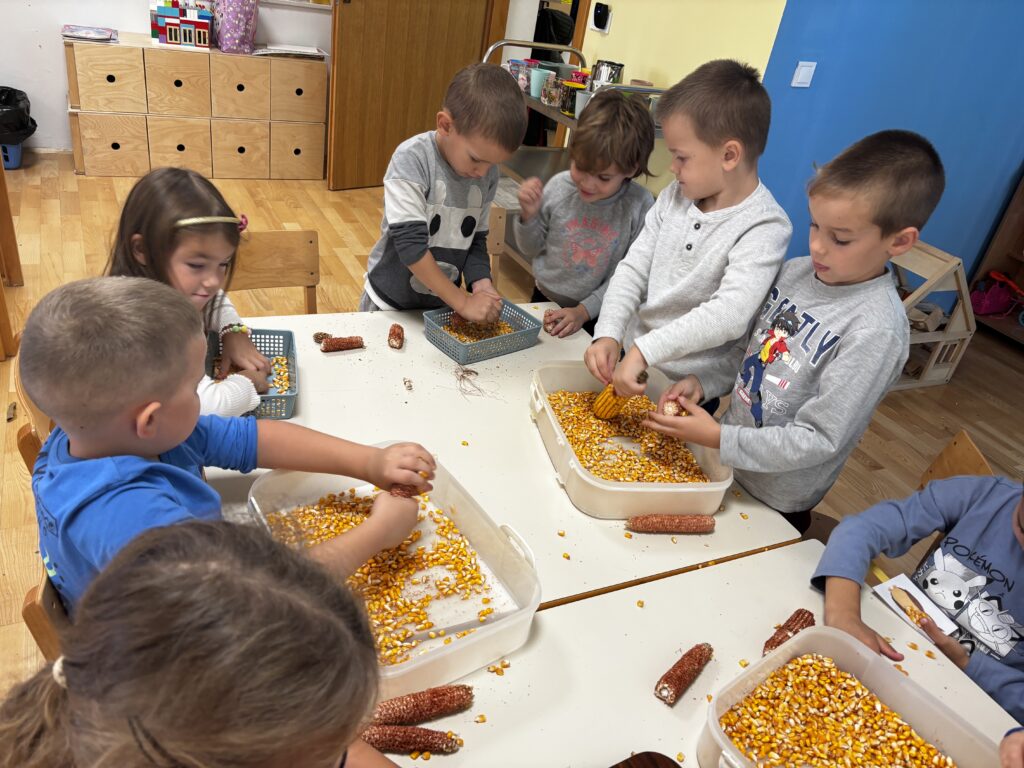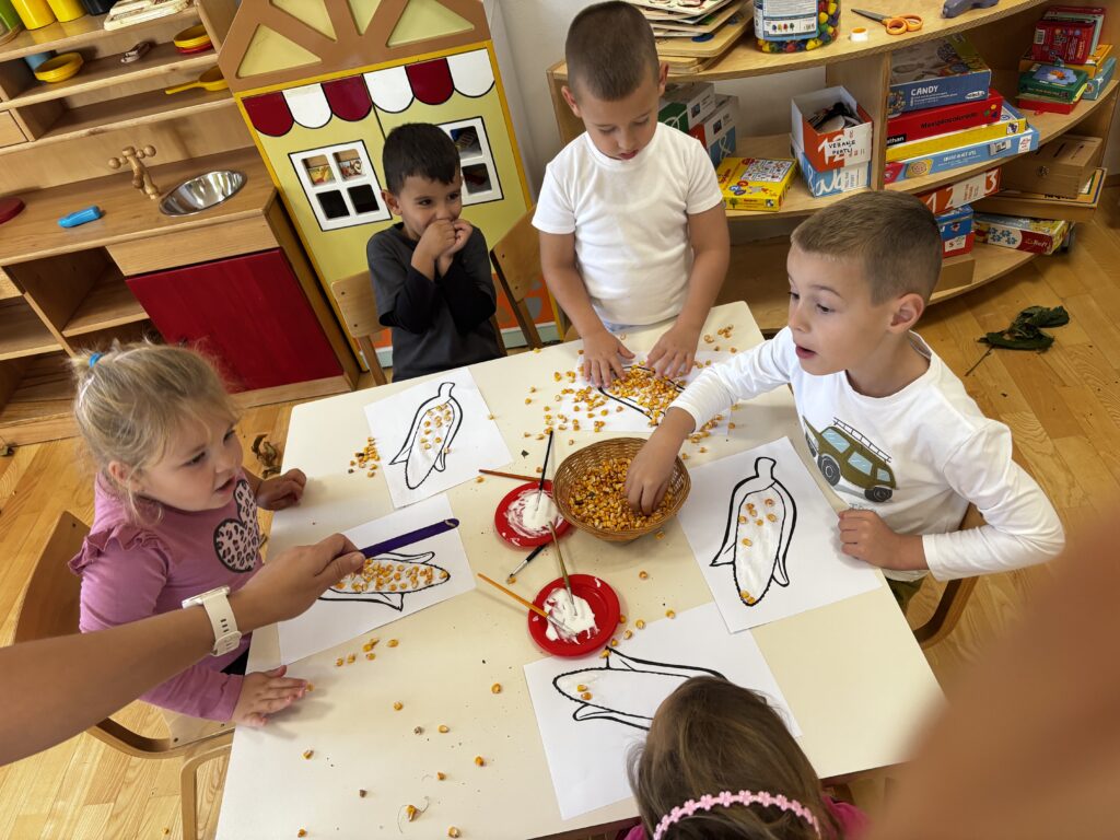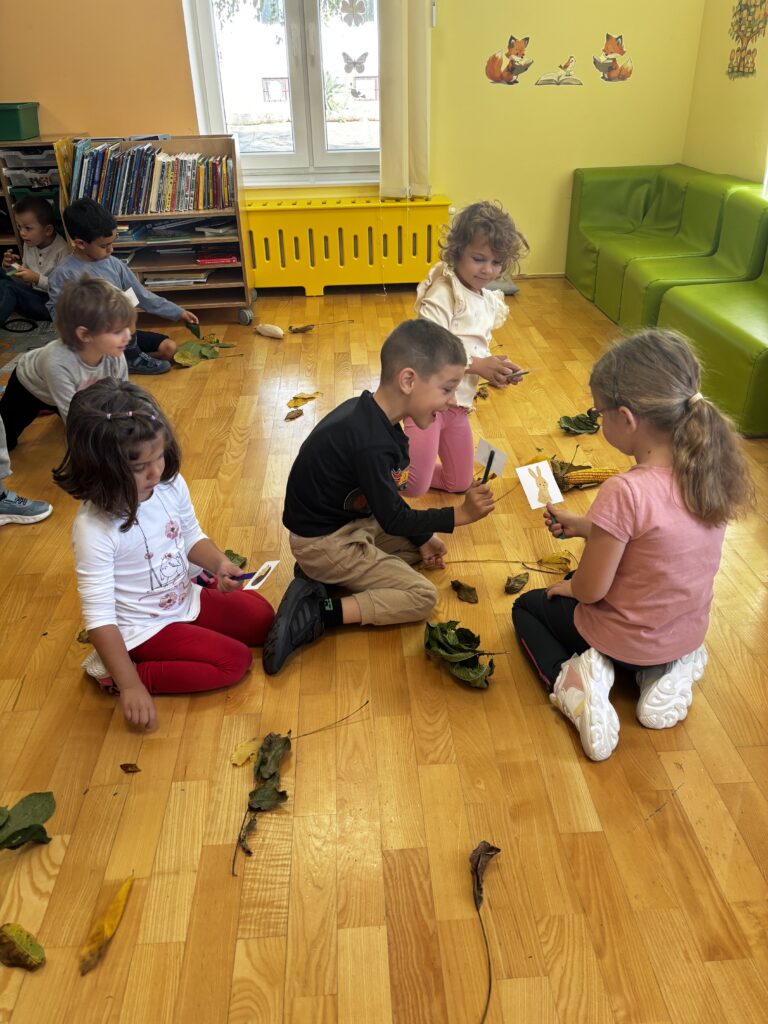 Runila su kukuruz i lijepila zrna na slikovne poticaje, dok su u sobi otkrivala lišće i jesenske plodove skrivene po cijelom prostoru. Svako dijete imalo je svoju životinjicu – vjevericu, ježa ili medvjeda – i tražilo joj je hranu.
