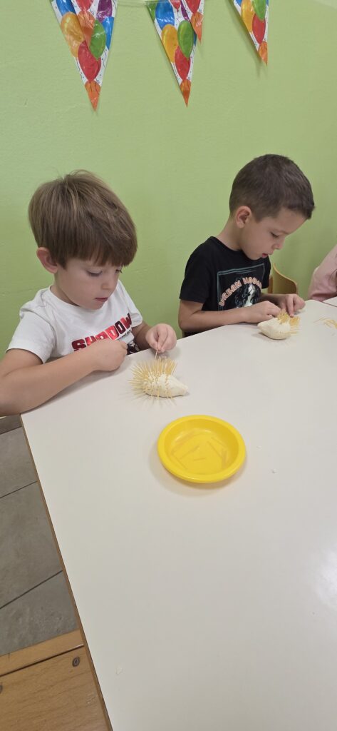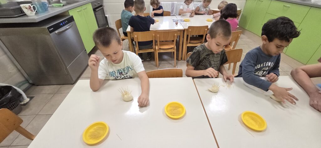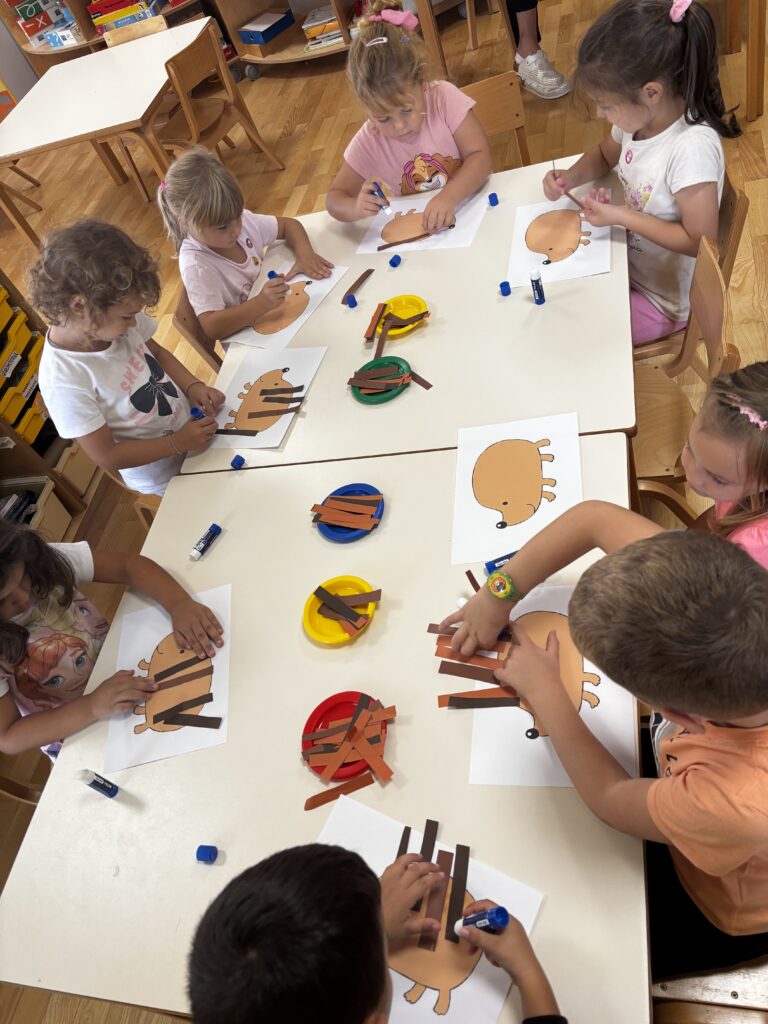 Rukama su usitnjavali lišće, lijepili ga na rep vjeverice, temperama crtali krzno, bodlje i kožu, a od kolaž papira, tijesta sa sjemenkama ili špageta izrađivali su ježeve s bodljama.