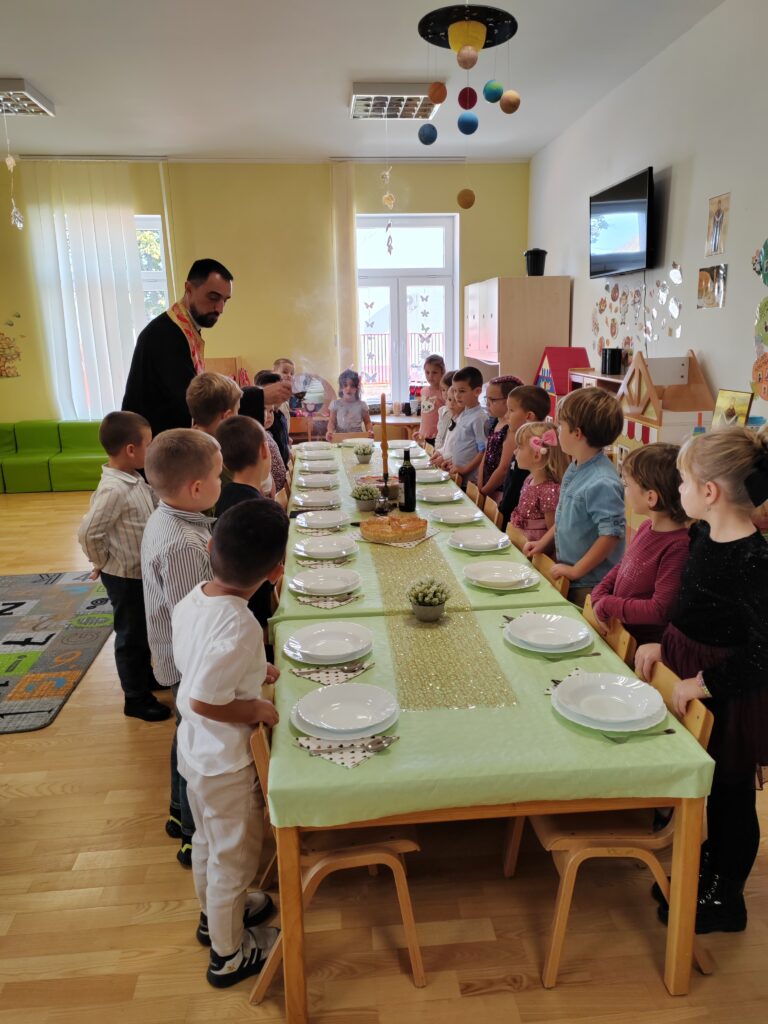 14.10. 2025. godine smo u našem vrtiću svečano obilježili Krsnu slavu – Pokrov Presvete Bogorodice, poštujući tradiciju i običaje, uz prisustvo sveštenika, kome se ovim putem srdačno zahvaljujemo na blagoslovu i toplim riječima.