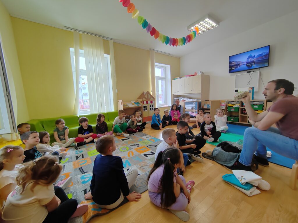 “Naš vrtić posjetio je umjetnički rukovoditelj KUD-a “Srem” iz Markušice, gospodin Zoran Abadžić. Kroz zanimljivo i djeci prilagođeno predstavljanje, upoznao je djecu s bogatstvom folklora – narodnom nošnjom, plesovima, pjesmama i tradicijom.